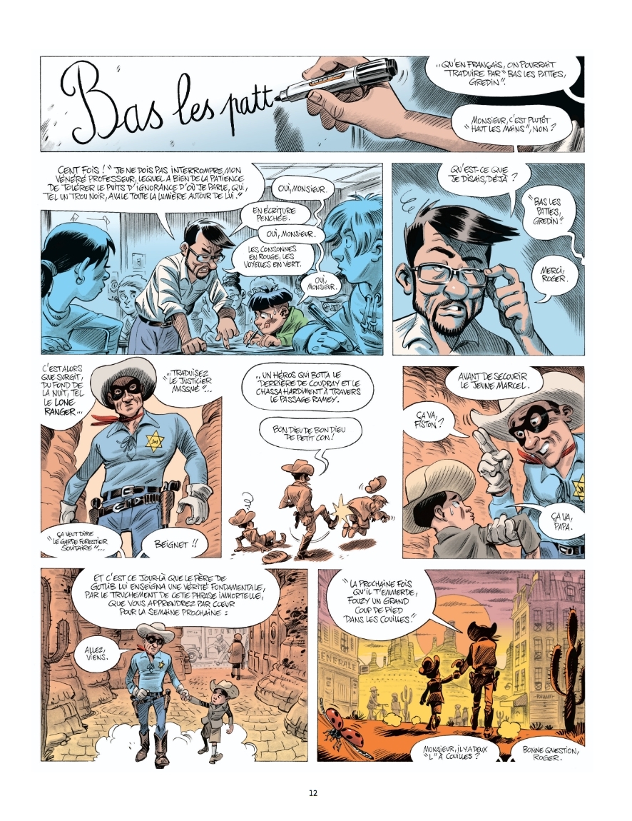 Ce qui n’empêche pas quelques moments poignants, comme cette séquence où, enfant, il s’imagine sous les traits d’un cow-boy, protégé par son père dont l’étoile de shérif se confond avec un autre type d’étoile jaune. En 1942, ce père monte dans un train pour l’Allemagne; il ne reviendra pas.