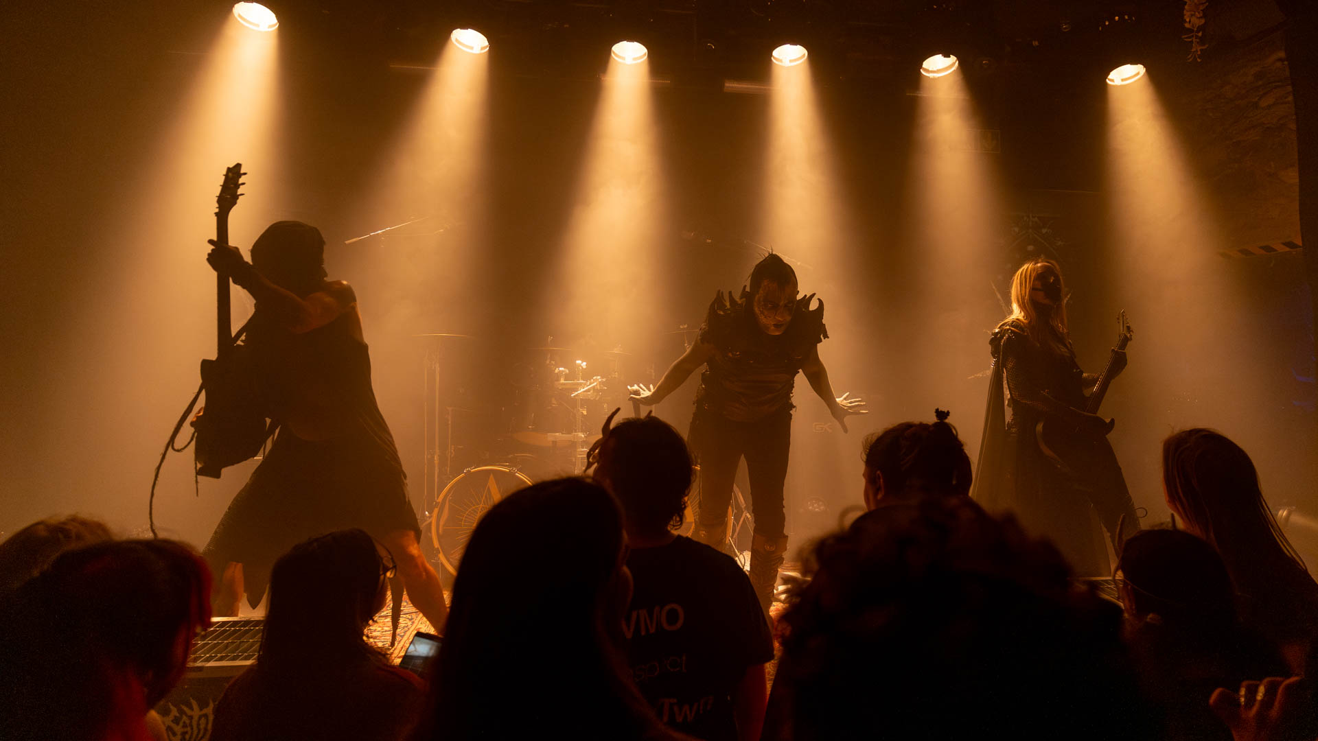 Tout de suite, l’ambiance scénique est différente: éclairages puissants dans les tons chauds, tenues en lin blanc. Musicalement, on reste dans des parages similaires, entre post-metal et black-metal atmosphérique, dominé par un duo vocal entre hurlements, voix saturées et chant clair. Le tout donne une atmosphère hypnotique, complètement dans le thème du groupe.