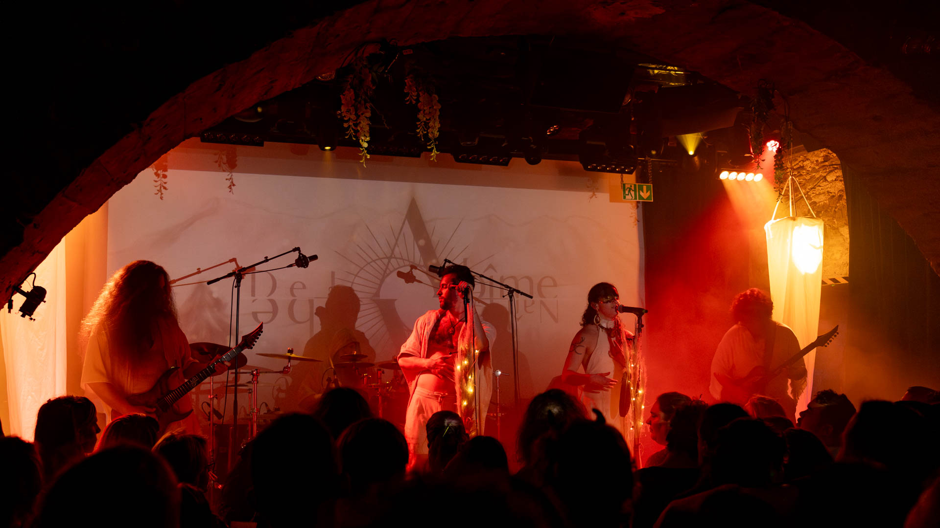En effet, cette soirée est officiellement le vernissage de Rituel : Initiation, le premier (et excellent) album de De l’Abîme Naît l’Aube. Et, pour l’occasion, ils ont invité deux groupes qui ont également un aspect théâtral plus ou moins fort.